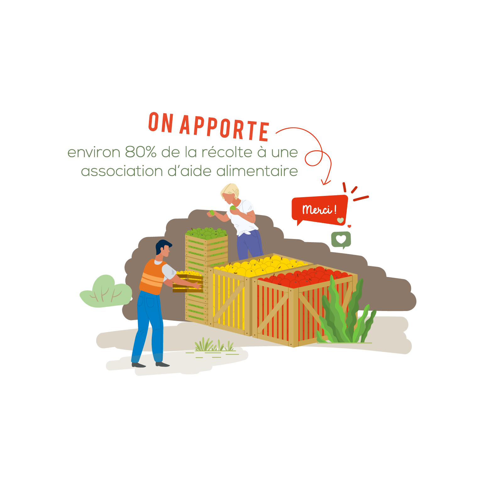 Nous avons donc décidé de confier la grande majorité des fruits cueillis à des structures qui accompagnent les personnes en situation de précarité alimentaire, tout en les encourageant à venir participer aux récoltes avec nous. Nous œuvrons ainsi pour une meilleure répartition des ressources alimentaires. Cette solidarité est par ailleurs un des moteurs principaux des personnes qui nous rejoignent dans l’aventure.